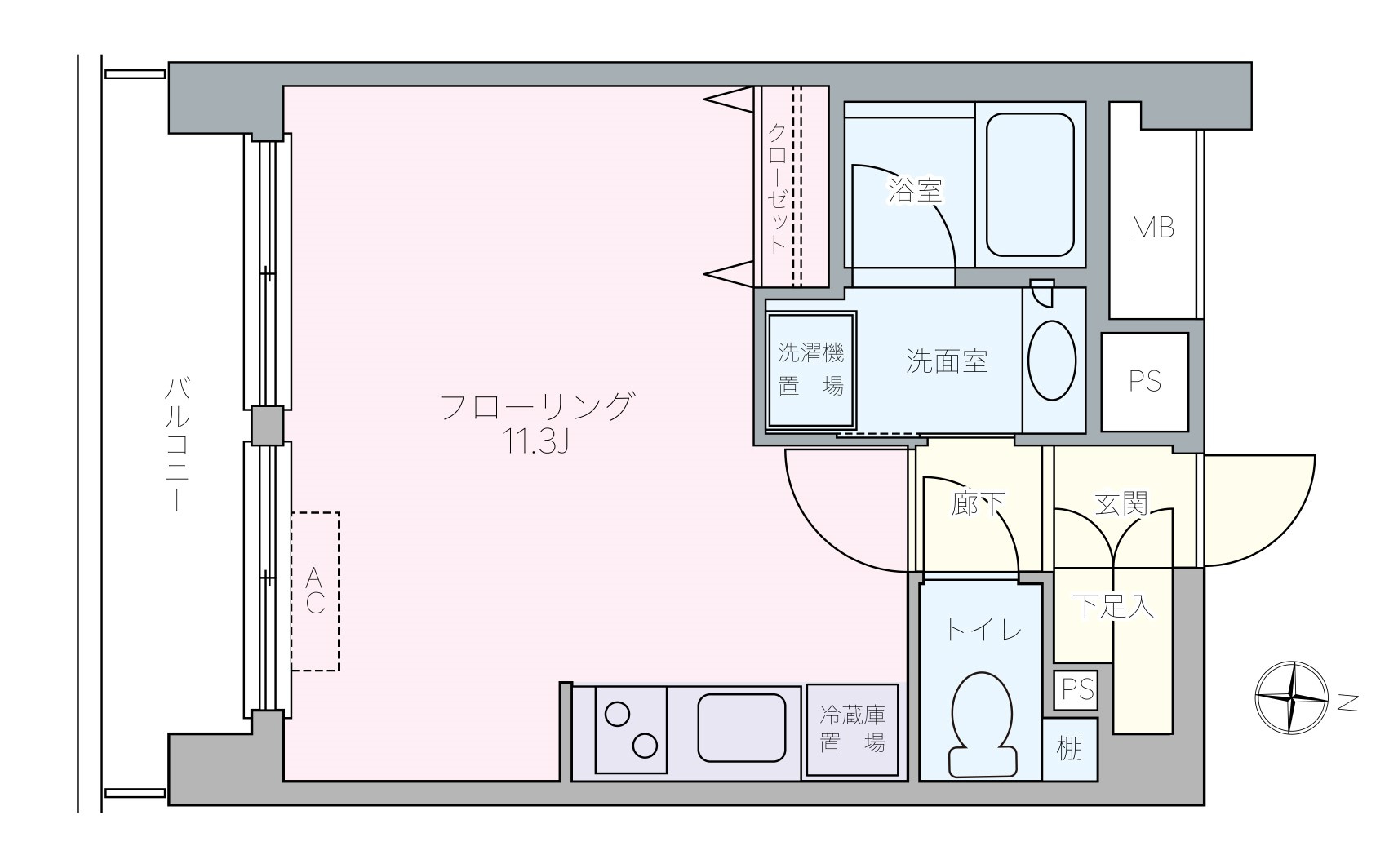 ワンルームのお部屋ですが分譲タイプなので設備もしっかりしていて、広さも11.3畳あるので、リビングエリアとベッドルームエリアに分けて使うことが可能です!